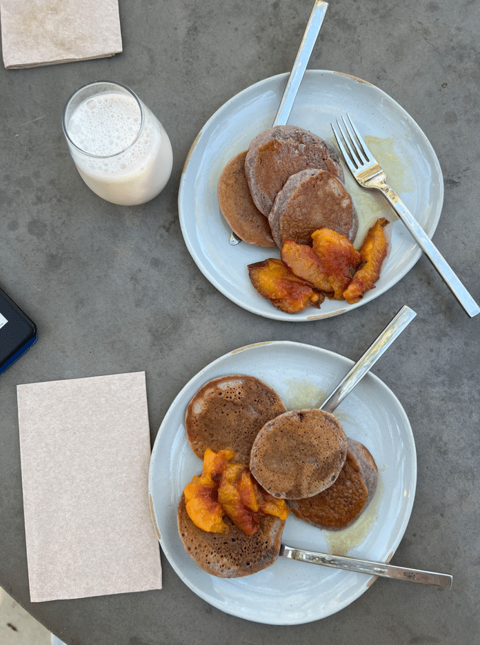 The Airstreams are pure delight for what you are paying, white pressed, fine thread count sheets, absolutely comfortable beds, streaming hot showers, a running toilet for anyone who doesn’t want to use this and a microwave that is also a convection oven. Because I’m the adventurous type and I want my son to see that I can cook on an open flame I DID IT. I was able to make pancakes on the fire the night before, I wrapped a peach in aluminum foil, placed it in the hot coals, and indulged in the morning for breakfast, so good!