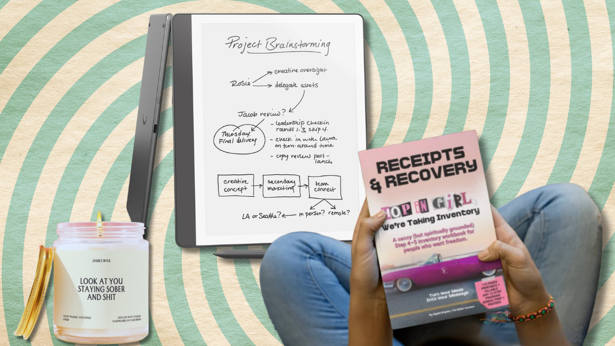 The best recovery gifts celebrate her without putting her on display. A few rules: Does this feel like support or surveillance? Would she be comfortable opening this in front of other people? The ‘Look At You Staying Sober And Shit’ candle from James Wax hits the sweet spot — it’s cheeky and specific without being a motivational poster. A personalized sobriety journal with her name and date is genuinely useful. The Step 4 & 5 Inventory Workbook from Etsy is a solid choice only if she’s actively doing that kind of structured work and would want it as a tool. When in doubt, lead with something fun and stylish and follow it up with something quietly supportive.