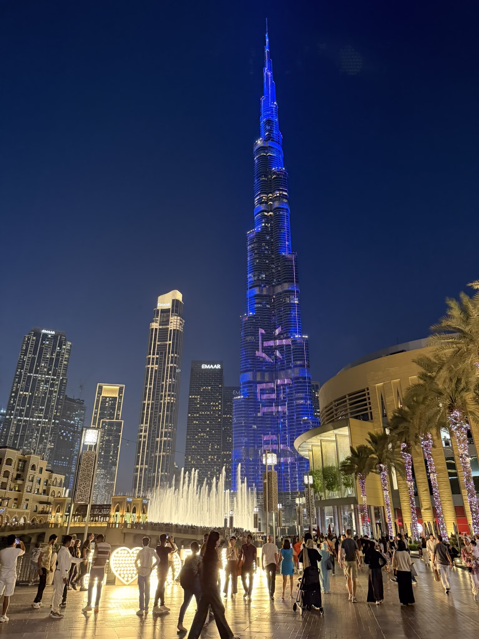 I felt like a rich monster buying these ridiculously expensive pastries, 55 dirhams each, which is about $15. For a croissant! I was especially embarrassed to buy these treats from a man whose country is in shambles. Then again, the Dubai Mall has flagship stores for Dior, Gucci, Prada, etc., so I’m sure my Syrian friend has seen people spend their money on plenty of stupid things. He offered me a bag but I didn’t want to waste one, so I set my pink pastry box on top of my collection of skincare samples and set off home. The Burj Khalifa was putting on its nightly light show as I passed, the enormous mall fountain spraying jets of water that danced in time to loud music.
